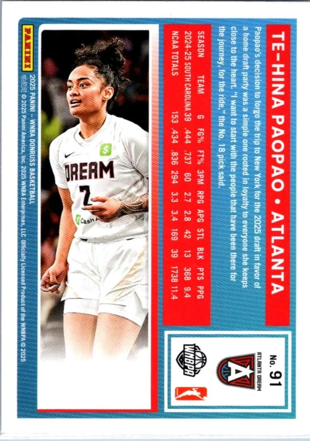 This is a nice example of a 2025 Donruss WNBA #91 Te-Hina Paopao