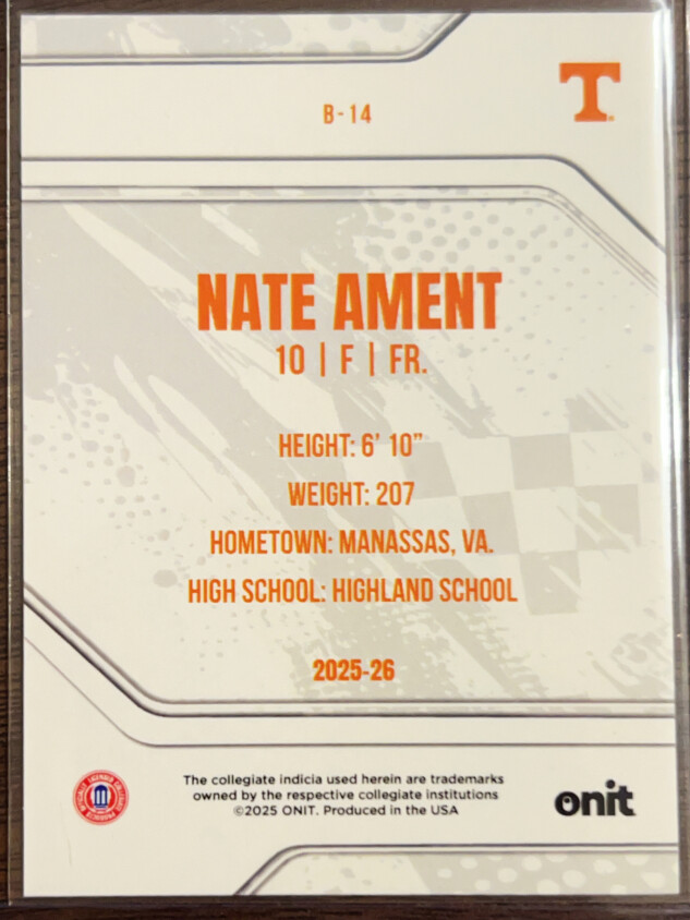 You are purchasing a 2025 ONIT Tennessee Volunteers Nate Ament #B-14. You will receive the exact item in the photographs. Thank you for looking.