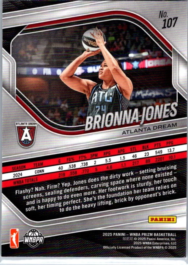 This is a nice example of a 2025 Panini Prizm WNBA #107 Brionna Jones