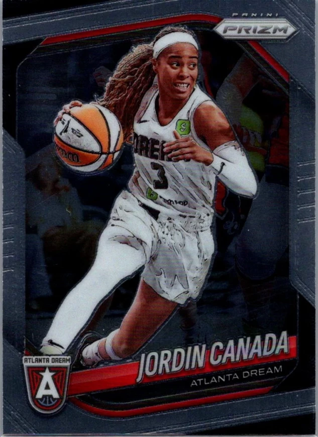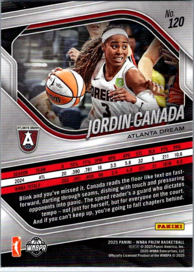 This is a nice example of a 2025 Panini Prizm WNBA #120 Jordin Canada