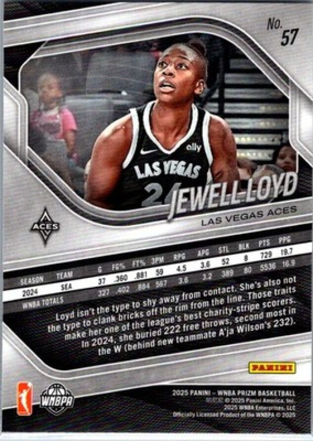 This is a nice example of a 2025 Panini Prizm WNBA #57 Jewell Loyd