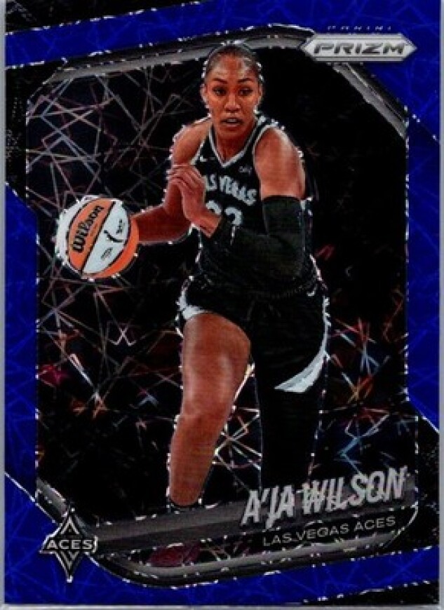 This is a nice example of a 2025 Panini Prizm WNBA #76 A’ja Wilson Blue Velocity Prizms