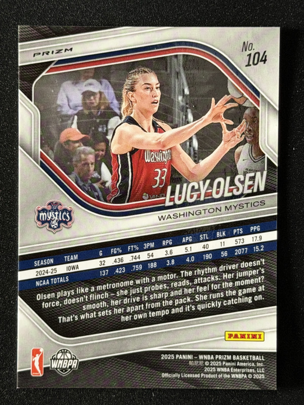 You are purchasing a 2025 Panini Prizm WNBA Lucy Olsen #104 Green Rookie RC .