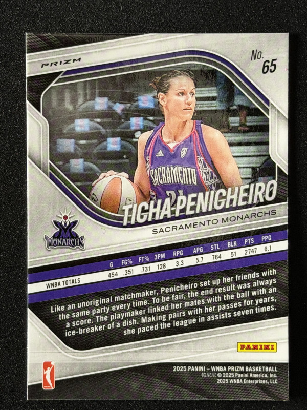 You are purchasing a 2025 Panini Prizm WNBA Ticha Penicheiro #65 Cracked Ice .