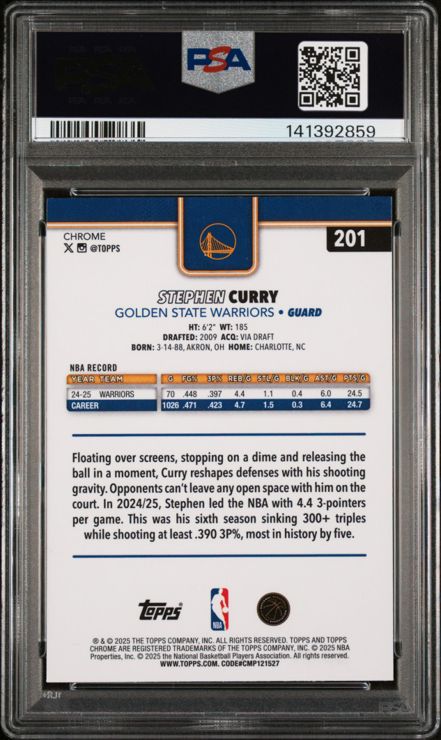 2025 Topps Chrome Prism Refractor Stephen Curry #201 PSA 9 MINT