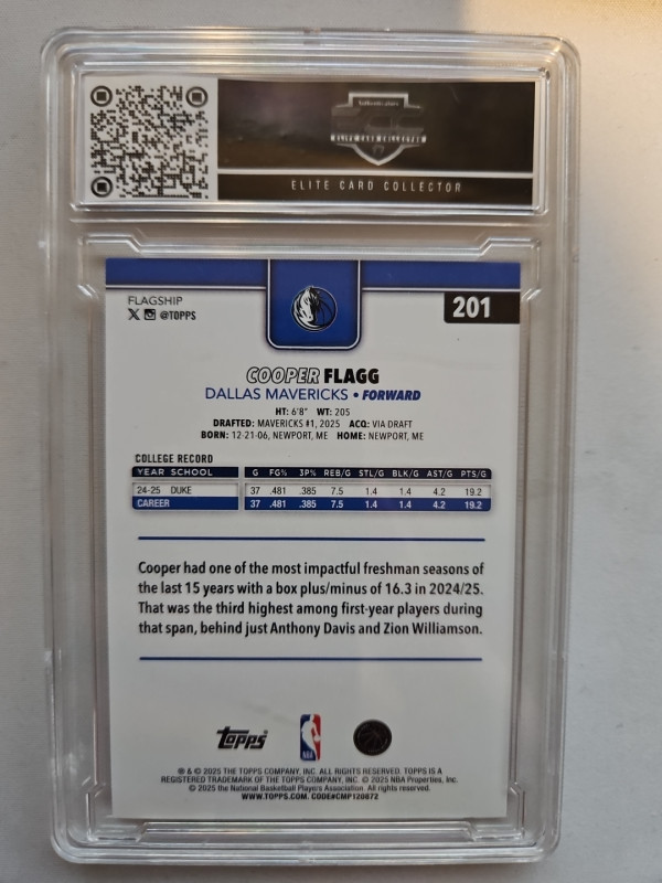 Rookie Cooper Flagg graded a ECC9. Ready to ship