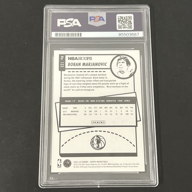This listing features a 2021-22 Panini NBA Hoops #122 Boban Marjanovic, professionally PSA authenticated.