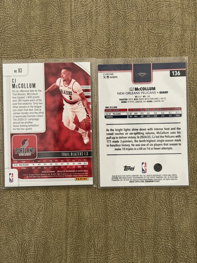 You get both CJ McCollum numbered cards!! It’s playoff time and he’s balling out