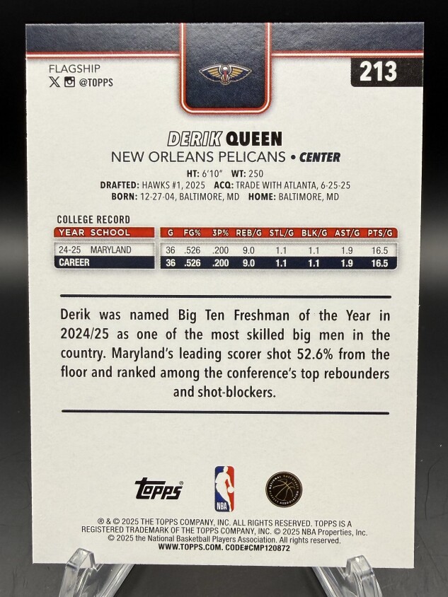 Derik Queen 2025-26 Topps RC #213