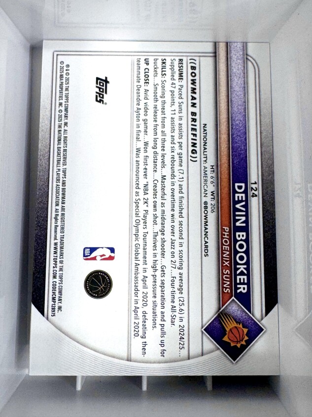 You are purchasing a 2026 Bowman Basketball Devin Booker #124 [CLEAN]. You will receive the exact item in the photographs. Thank you for looking.