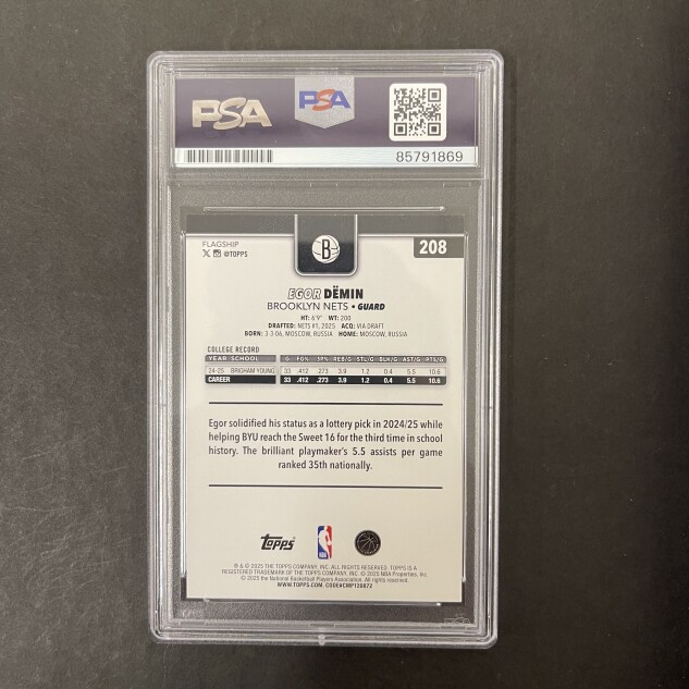 This listing features a 2025 Topps #208 Egor Demin, professionally PSA authenticated.