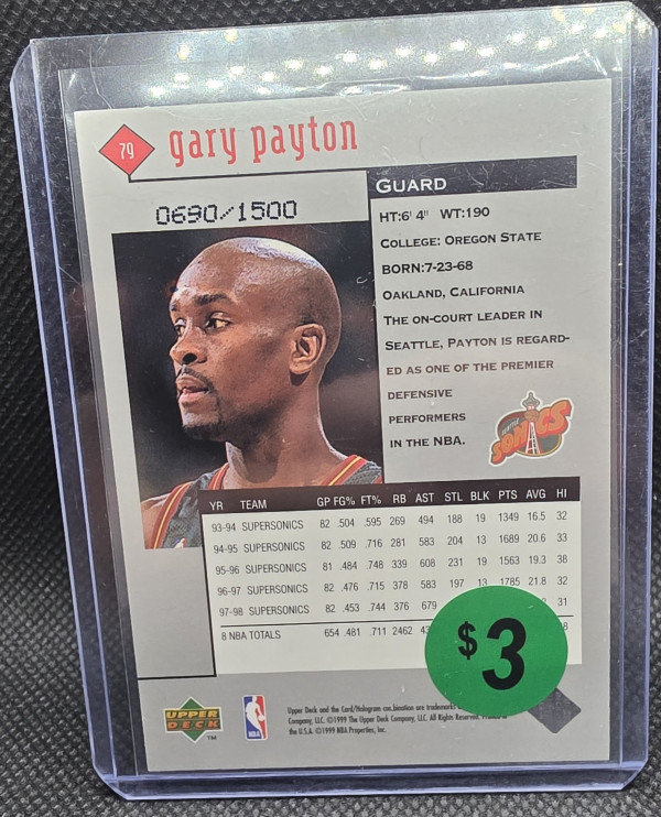 Gary Payton 1998-99 Upper Deck Triple Diamond #79 SP /1500 HOF