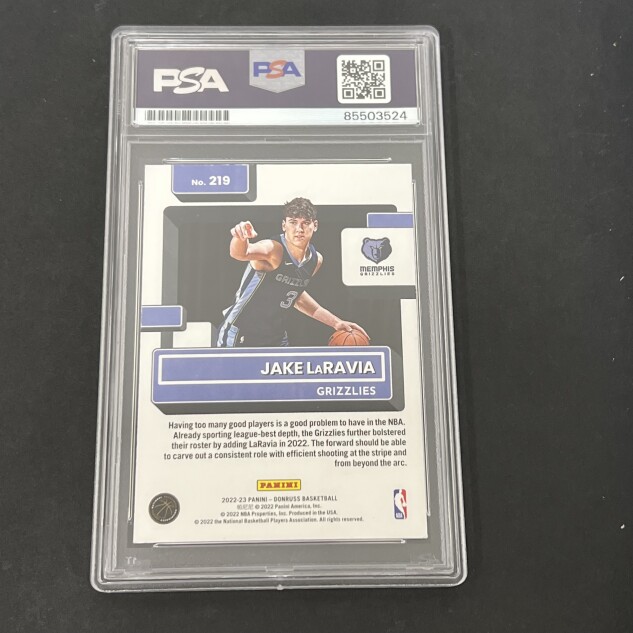 This listing features a Panini 2022-23 Donruss #219 Jake LaRavia, professionally PSA authenticated.