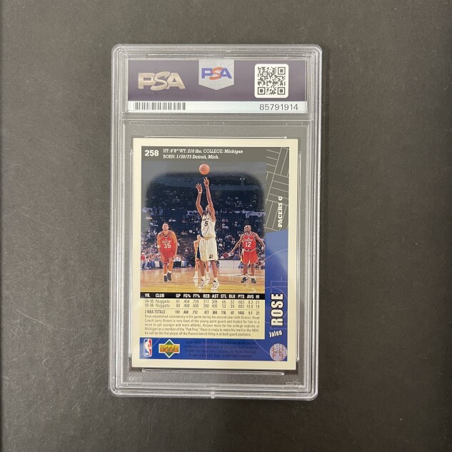 This listing features a 1996 Upper Deck #258 Jalen Rose, professionally PSA authenticated.