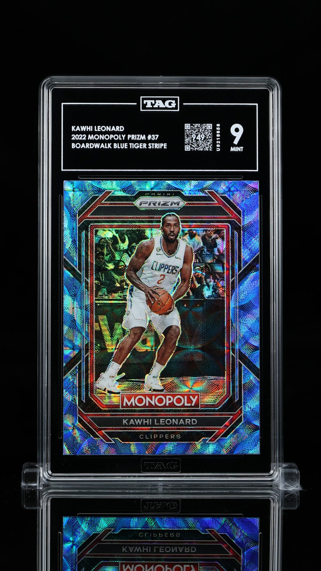 Kawhi Leonard 2022 Panini Monopoly Tiger Boardwalk BluePrizm #37 Boardwalk Blue Tiger Stripe Prizm