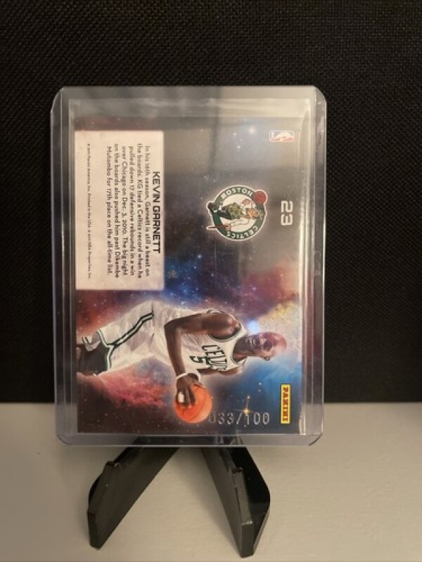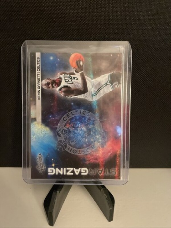 This is a rare Kevin Garnett 2010 Panini Absolute Memorabilia Star Gazing Spectrum card, numbered out of 100. The card features a stunning image of the legendary Boston Celtics player and comes from the National Basketball Association (NBA) league. It is an original card made of high-quality card stock and is not a licensed reprint or vintage item.