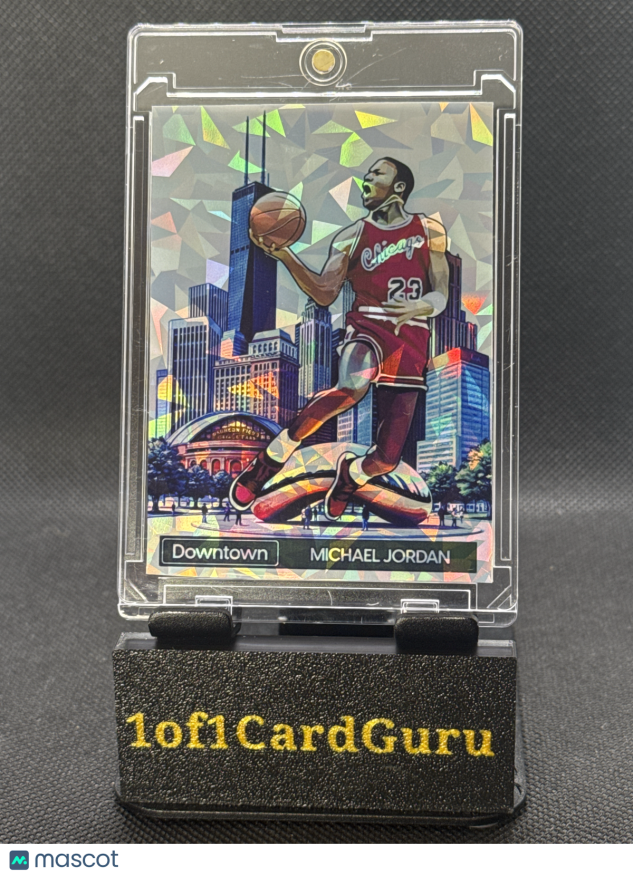 Up for grabs is a 1-of-1 custom Michael Jordan Downtown card created by the elite team at 918 Customs. This masterpiece features MJ soaring over the iconic Chicago skyline, paired with a stunning prism/ice refractor finish that pops under the light.