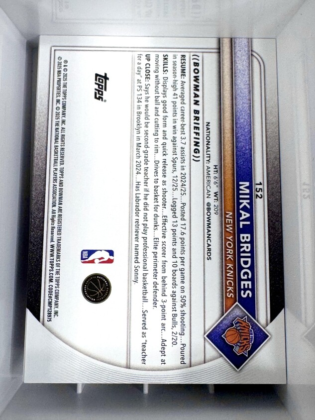 You are purchasing a 2026 Bowman Basketball Mikal Bridges #152 [CLEAN]. You will receive the exact item in the photographs. Thank you for looking.