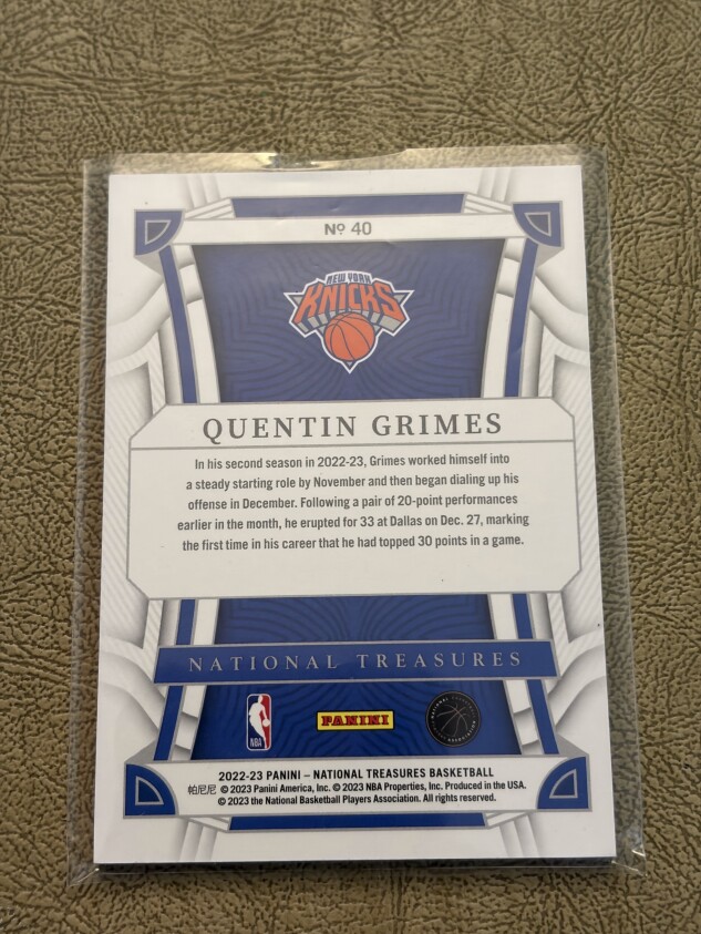 Panini 2022-23 National Treasures Quentin Grimes /99 Knicks Basketball