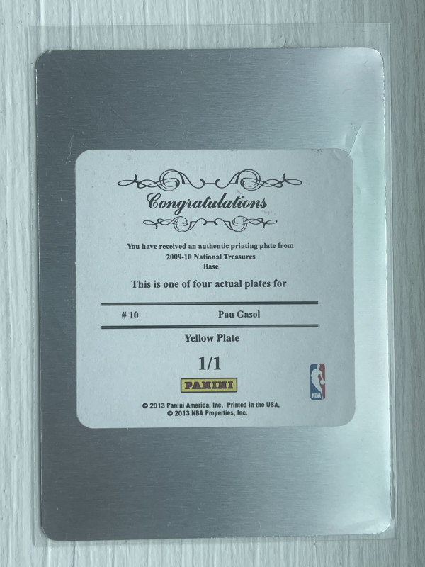 Pau Gasol 2009-10 Panini National Treasures Printing Plate Yellow 1/1