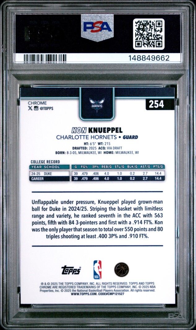 PSA 10 - 2025 Topps Chrome Kon Knueppel Red White And Blue Refractor