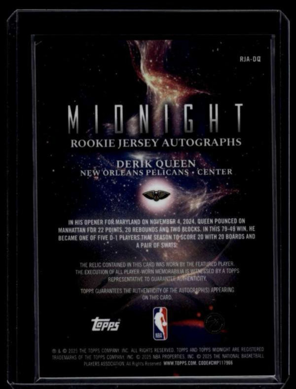 RJA-DQ Derik Queen 2025-26 Topps Midnight - Rookie Jersey Autographs Twilight #/199