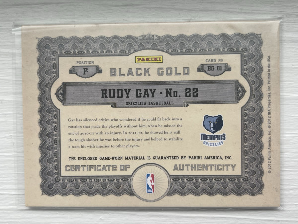 Rudy Gay 2010 Panini Black Gold Standard 13/99 Patch