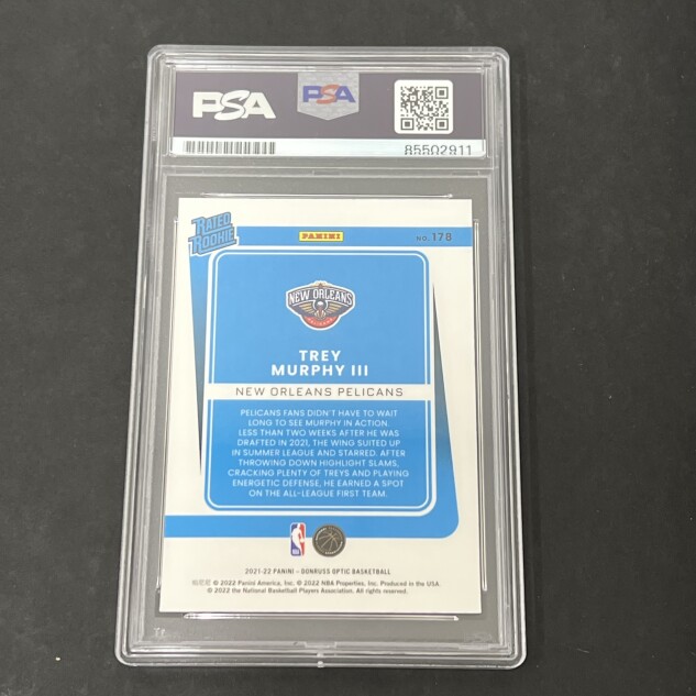 This listing features a 2021-22 Panini Donruss Optic #178 Trey Murphy III, professionally PSA authenticated.