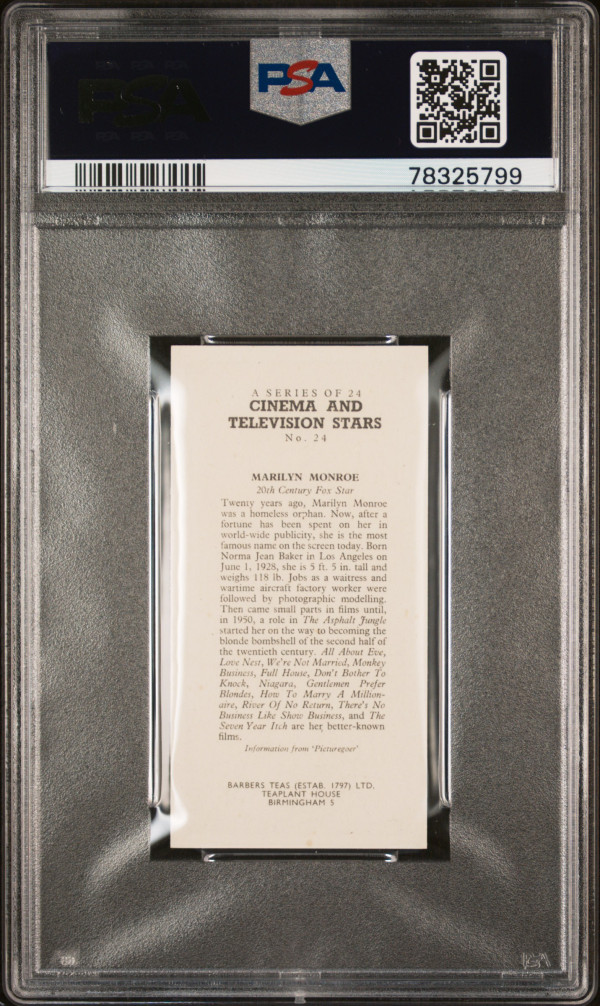 You are purchasing a 1955 Barbers Tea LTD. Cinema & T.V. Stars Marilyn Monroe #24 Cinema & T.V. Stars PSA 8. You will receive the exact card in the photographs. Thank you for looking. Listed with Mascot.