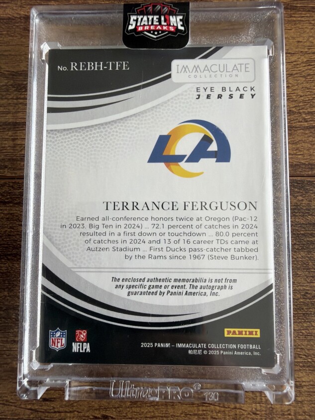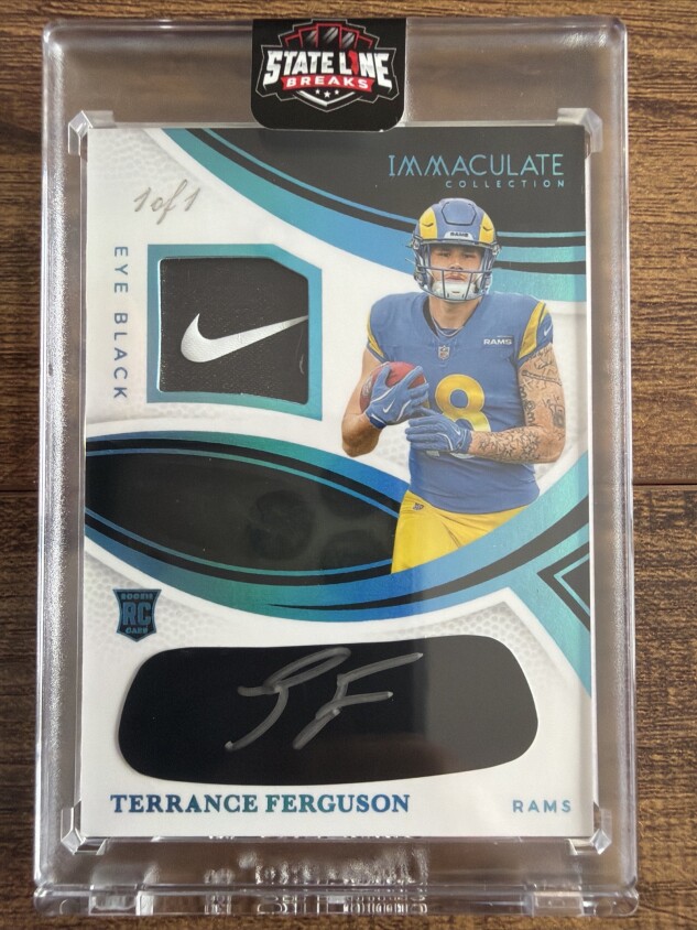 This 1/1 Rookie Terrance Ferguson eyeblack auto with Nike Swoosh patch is awesome! From Panini Immaculate Collection you know it’s a gorgeous card!