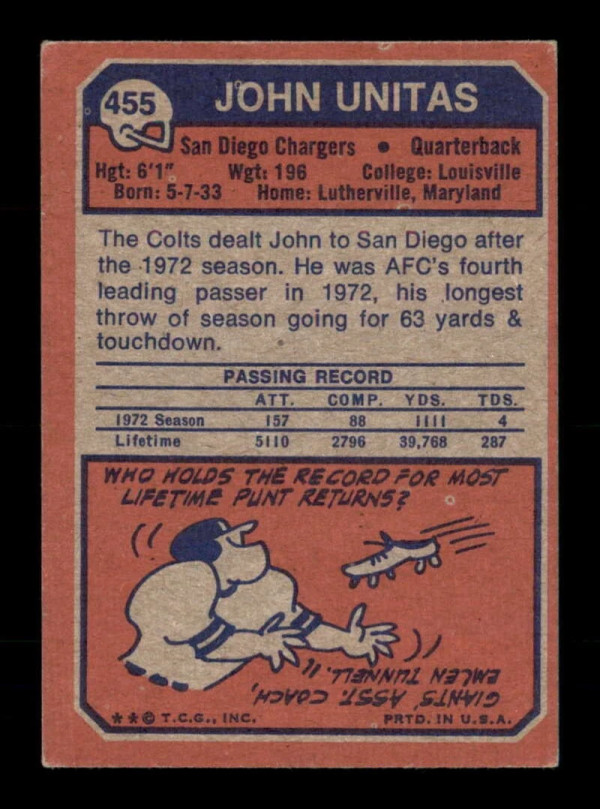 1973 Topps #455 Johnny Unitas VGEX