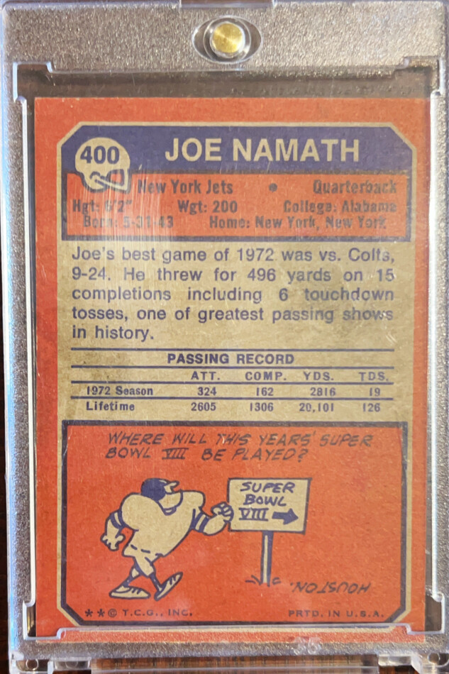 You are purchasing a 1973 Topps Joe Namath #400. You will receive the exact item in the photographs. Thank you for looking.