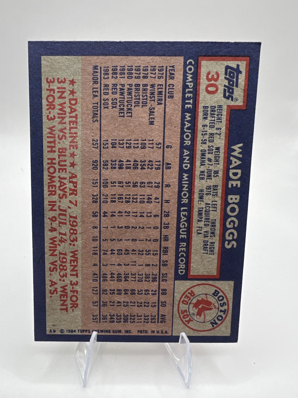 1984 Topps #30 Wade Boggs Boston Red Sox Baseball Card