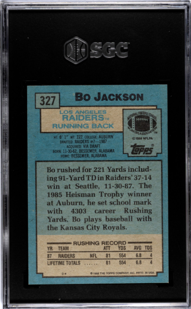 1988 Topps Bo Jackson #327 (SGC 8.5) Football Rookie RC