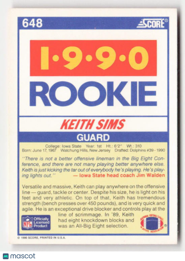1990 Score #648 Keith Sims