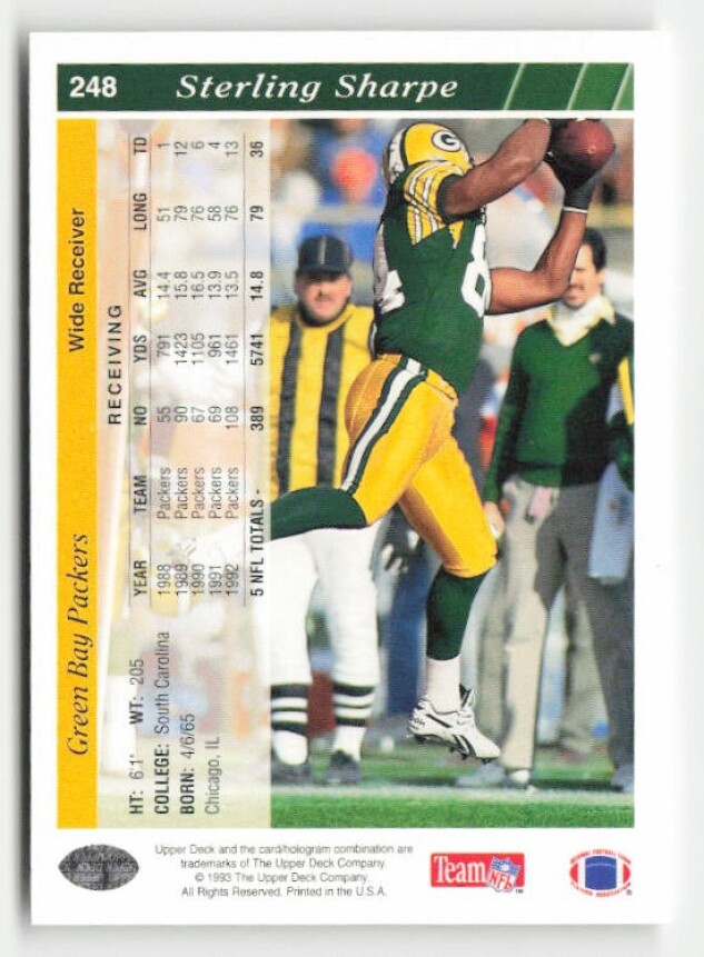 You are purchasing a 1993 Upper Deck Sterling Sharpe #248. You will receive the exact item in the photographs. Thank you for looking.