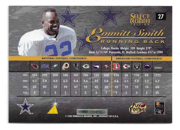 1996 SELECT CERTIFIED #27 EMMITT SMITH