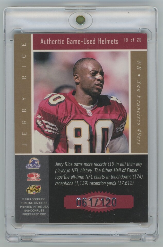 1999 Donruss Preferred QBC #19 Jerry Rice Preferred Materials #/120