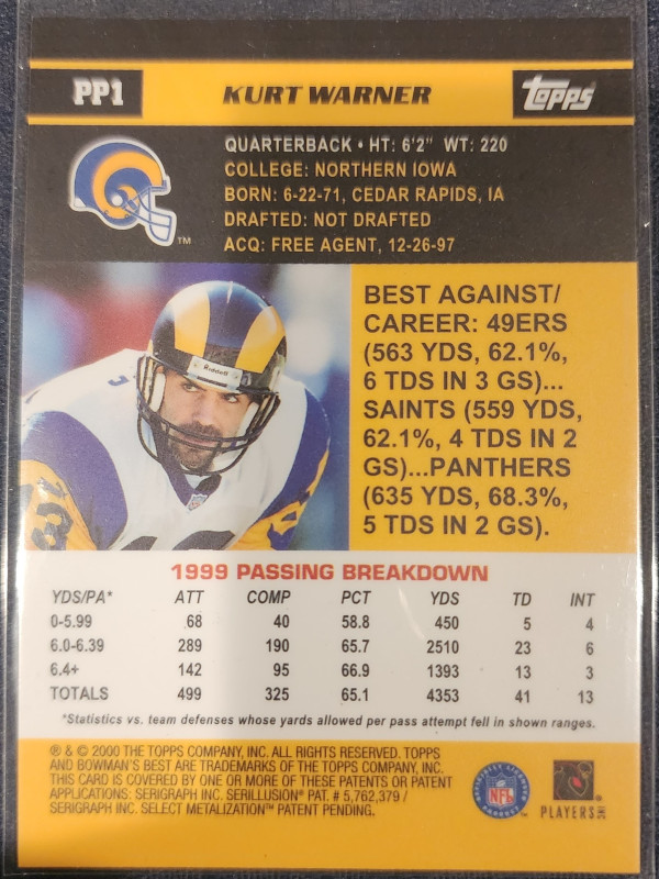 2000 Bowman's Best Kurt Warner Pre Production Refractor