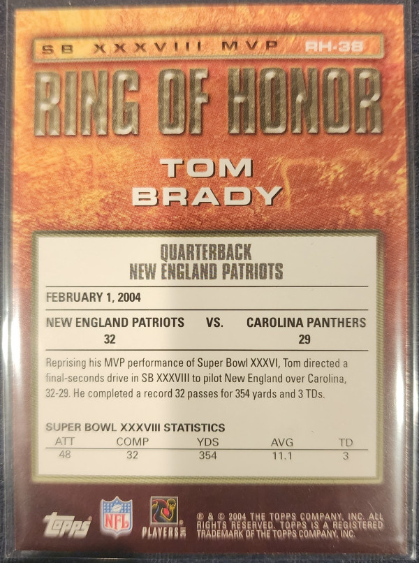 2004 Topps Tom Brady Ring Of Honor