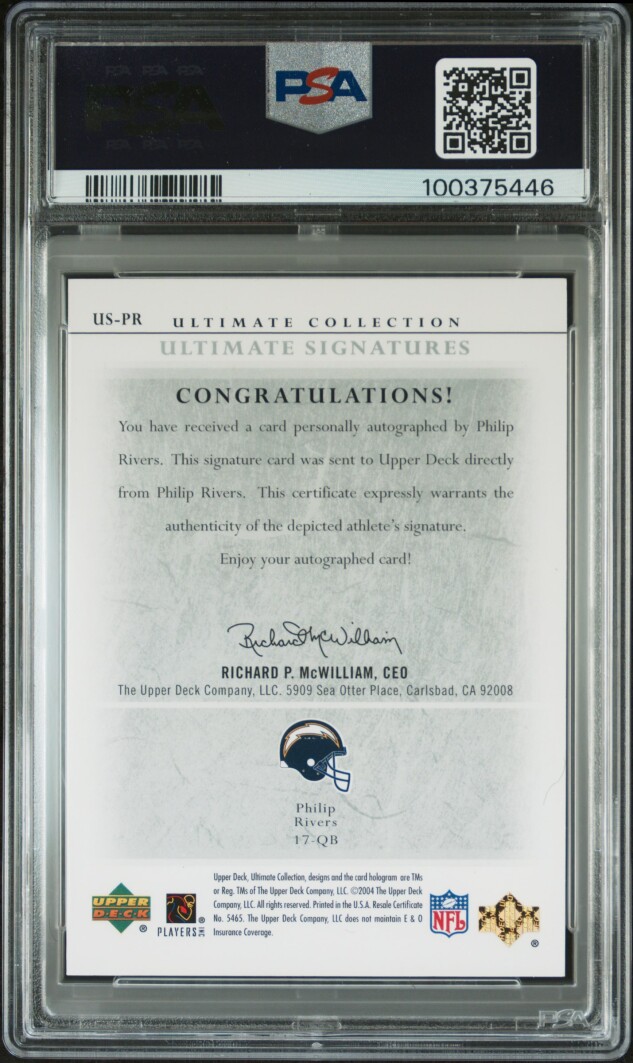 You are purchasing a 2004 Ultimate Collection Ultimate Signatures Philip Rivers #US-PR 122/275 PSA 9. You will receive the exact item in the photographs. Thank you for looking.