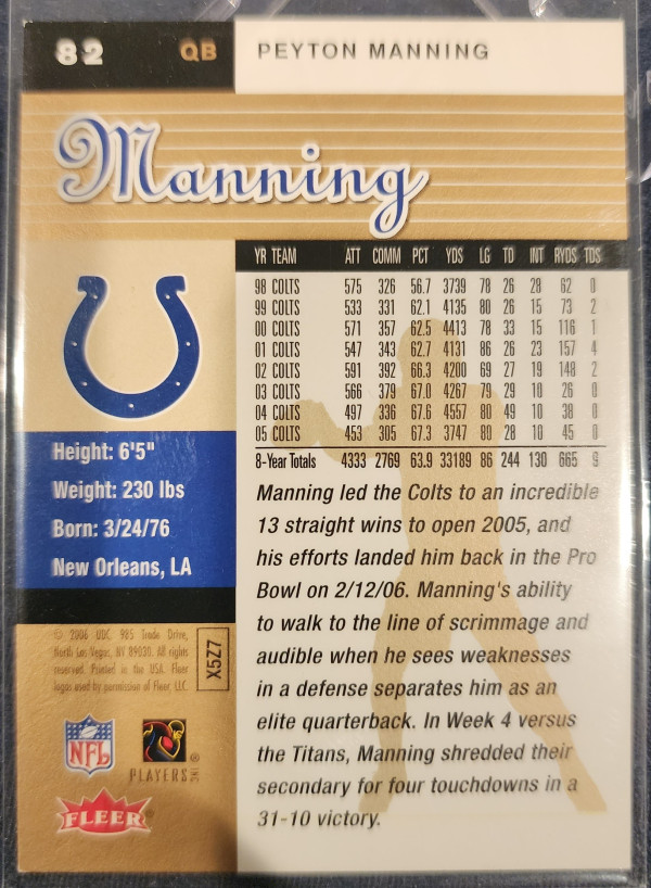 2006 Fleer Ultra Peyton Manning Gold Medallion