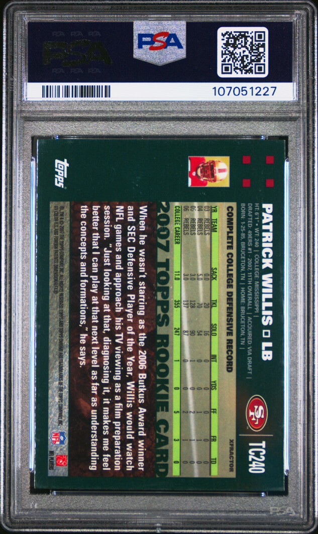 You are purchasing a 2007 Topps Chrome Patrick Willis Xfractor #TC240 PSA 8. You will receive the exact item in the photographs. Thank you for looking.