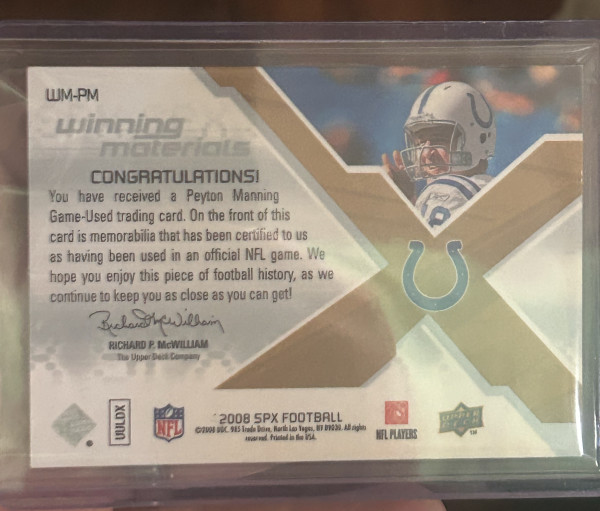 2008 Spx Triple Game Used Patches /25 Peyton Manning