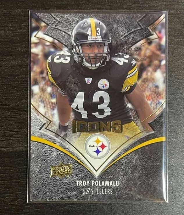 This is a nice example of a 2008 Upper Deck Icons #78 Troy Polamalu