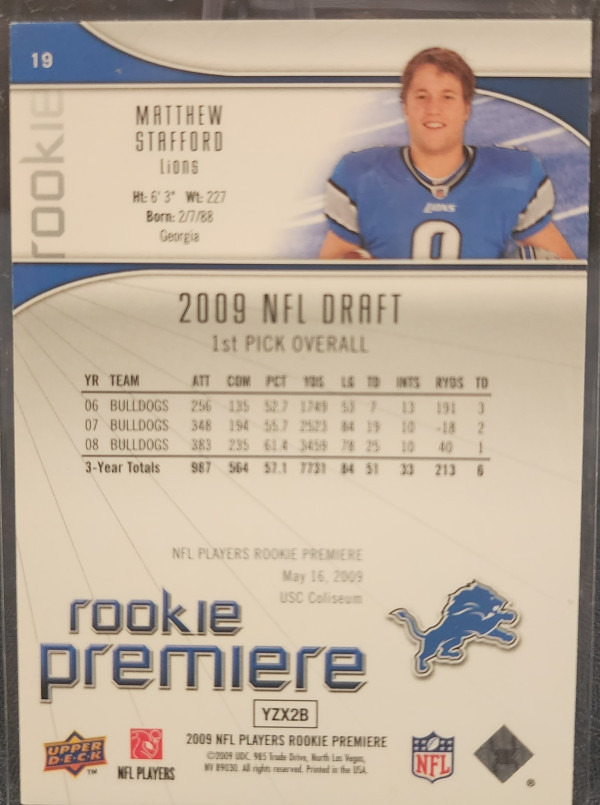 2009 Upper Deck Matthew Stafford Rookie Premier