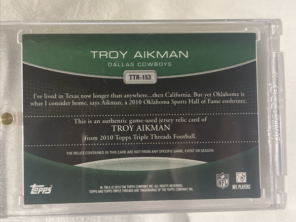 2010 Topps Triple Threads Troy Aikman 15/18 Jersey Patch Game Worn 1st Overall