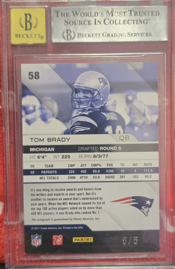2011 Absolute Memorabilia Spectrum Gold Autographs #58 Tom Brady 5/5.