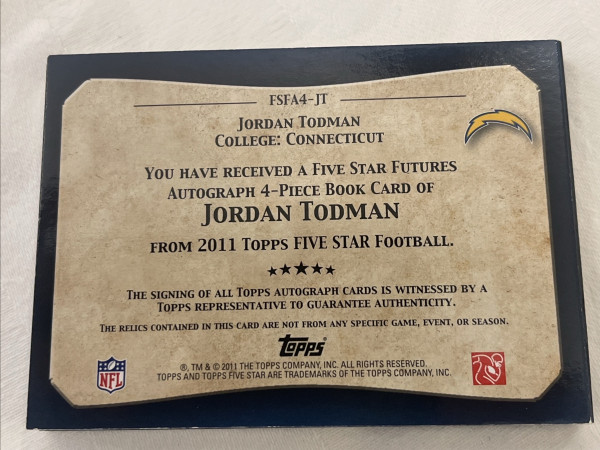 2011 Topps Five Star Futures Autograph 4-Piece Book 8/15 Jordan Todman Rookie RC
