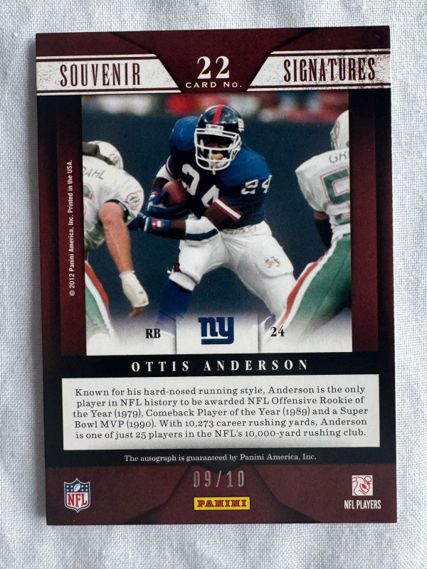2012 Momentum Souvenir Signatures Ottis Anderson #22 Auto 9/10 Giants